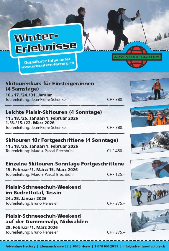 Preis: CHF 375.- Tourenleitung: Bruno Henseler Details und Anmeldung ansehen